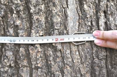北京市文物保护协会会员范纪萍走访发现,长辛店老镇底蕴深厚。在长辛店大街两侧的行道树中,部分国槐的胸径已达甚至超过古树标准,其树干粗壮至一两个人都难以合围,目前尚未被列入古树保护名录。参照《北京市古树名木评价标准》,古树的确认和分级以树龄为依据,暂不能确定树龄的,按树木胸径确认并分级。胸径,即树木根茎以上离地面1.3米处的主干带皮直径。国槐胸径≥100厘米的为一级古树,胸径≥60厘米的为二级古树。近日,北青报记者实测发现,长辛店老镇有11株国槐,已经符合北京市二级古树标准,其中8株为长辛店大街的行道树,其余3株位于大街周边,均未挂牌保护。