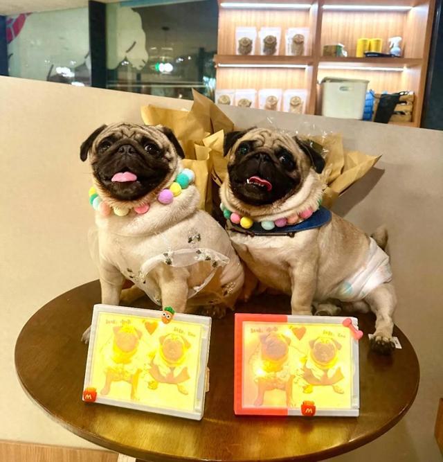 小狗婚礼的组织者胡女士告诉九派新闻记者,7月上旬,她邀请了三十组养狗家庭齐聚武汉一家宠物茶馆,为两只狗举办婚礼。“新郎”是她饲养近两年的巴哥犬,“新娘”是平日里经常一起玩耍的“好朋狗”。