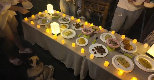 婚礼吃席环节,桌上摆满了各种宠物餐食。图/受访者提供